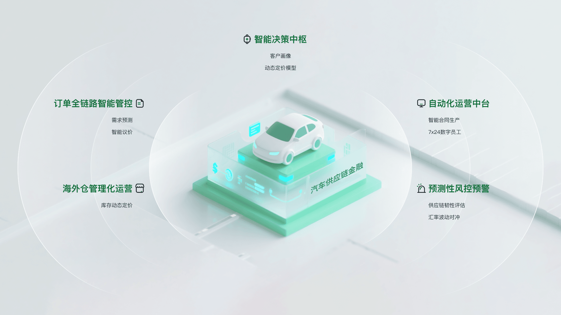 针对主机厂/经销商出口订单的预付款需求,基于订单真实性(通过区块链合同+物流数据交叉验证),提供采购资金支持。